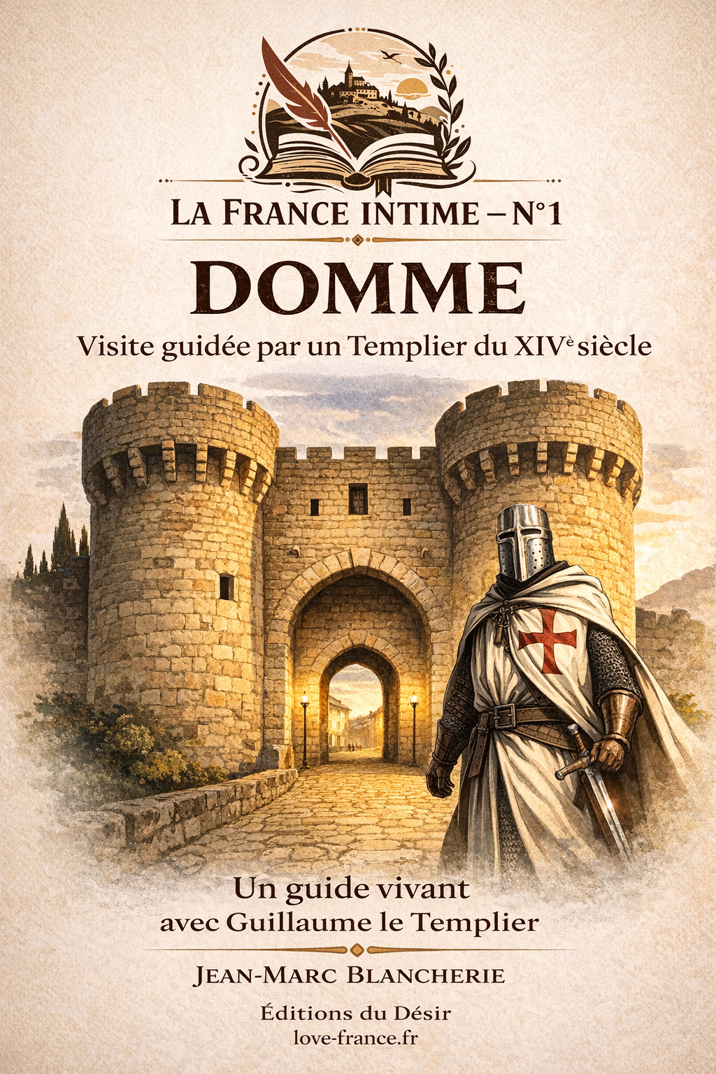 Domme – Visite guidée par un Templier du XIVᵉ siècle est le premier titre de la collection La France intime.
